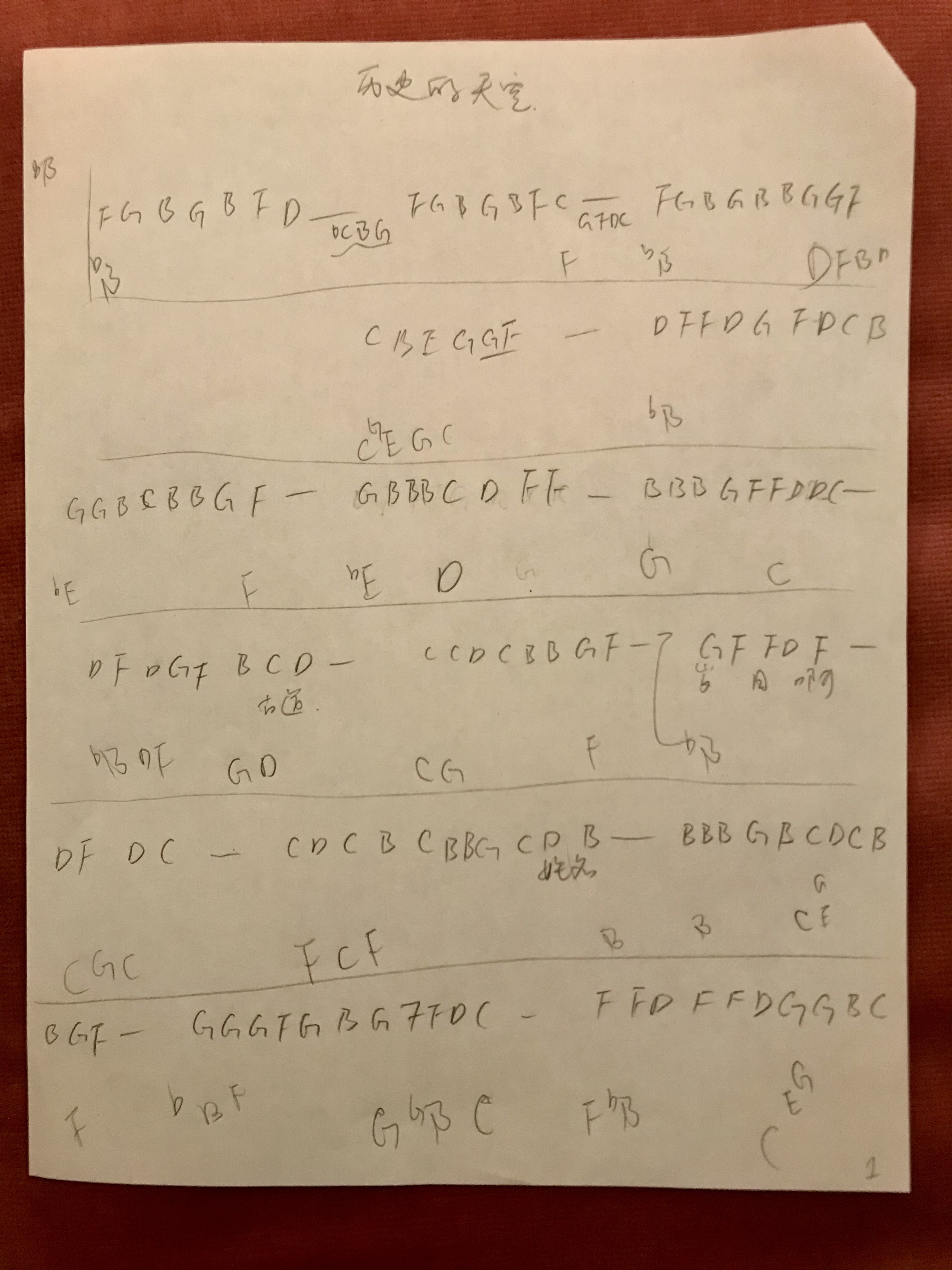 后来用这种简易扒谱写了全曲,结合视频或许能看懂吧哈哈