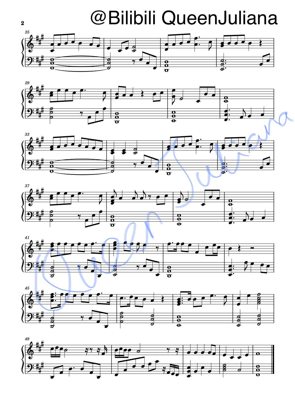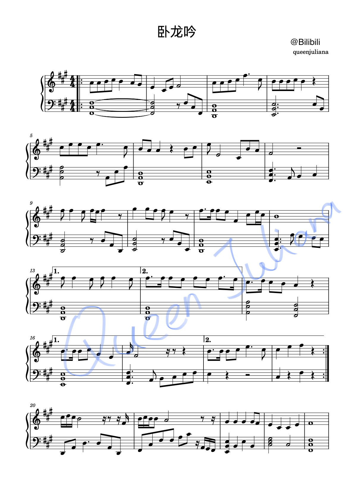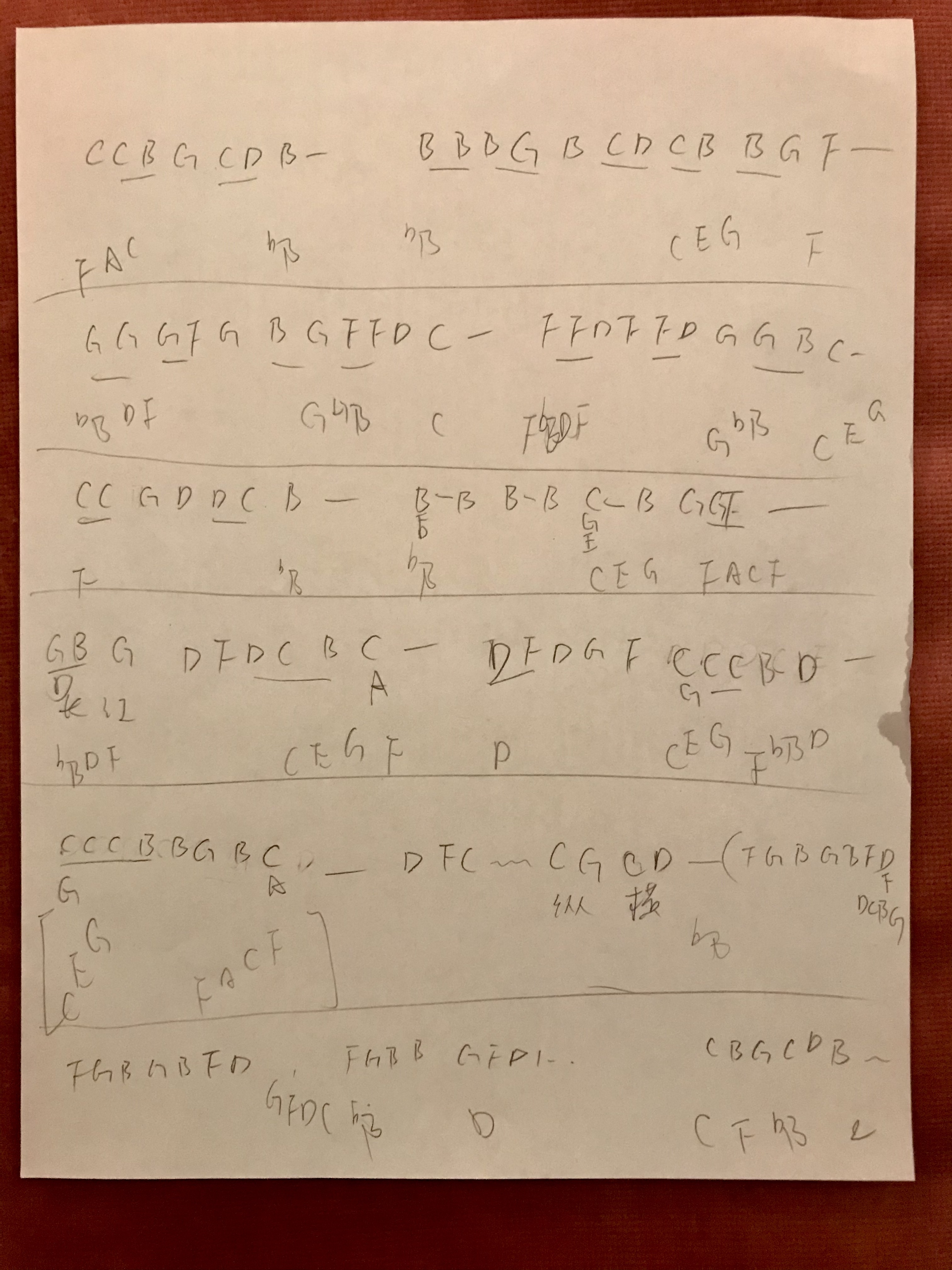 只是我自己的草稿不是认真的打谱,横线分割每行,上面一行右手,下面一行是左手和弦旋律音